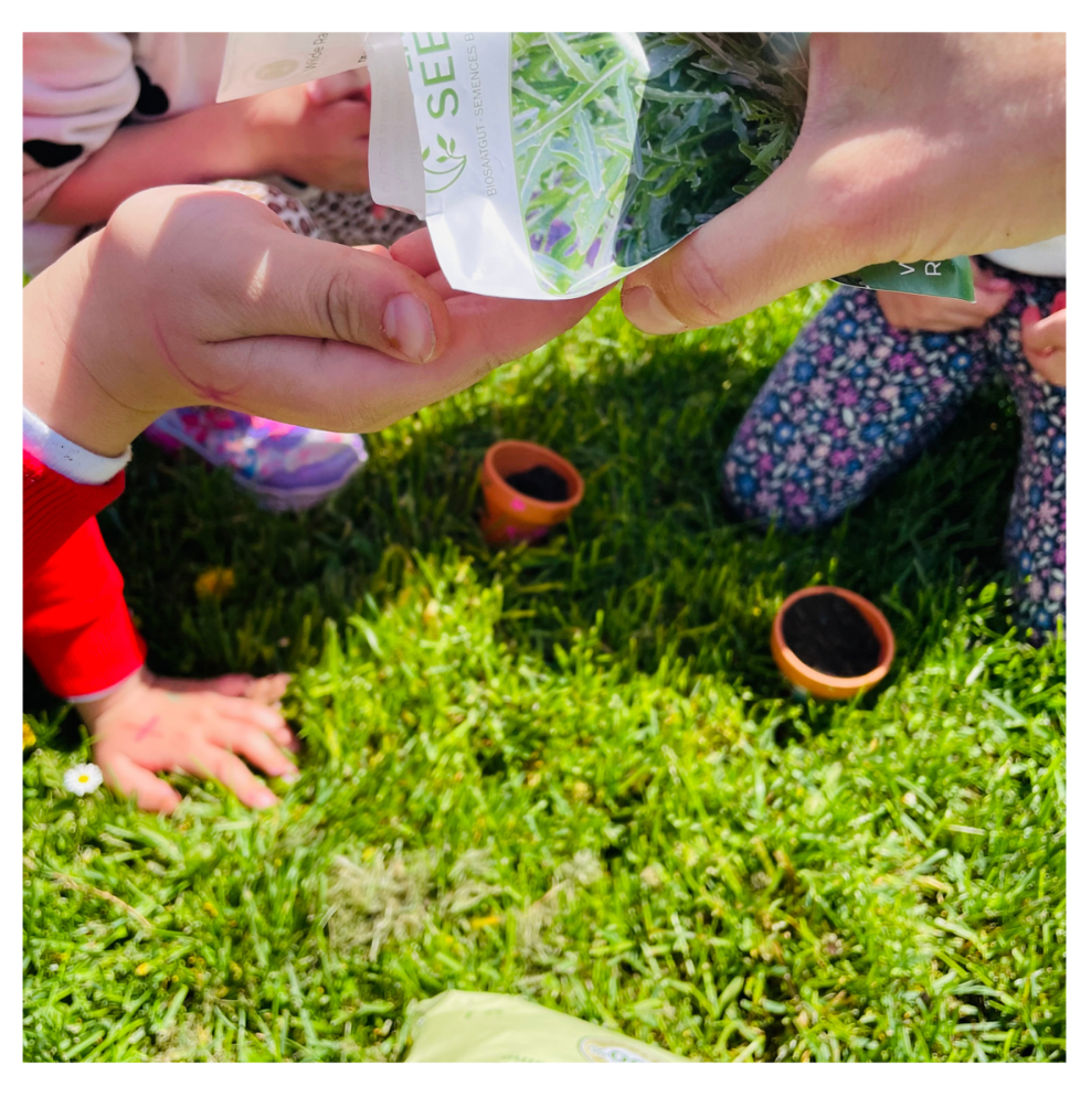 - 10h30-12h : Activités Montessori sensorielles ou atelier nature (observation insectes, land art, plantation…)